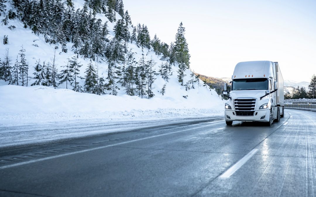 Bonnet big rig white semi truck transporting cargo in dry van semi trailer running on the winter dangerous slippery road with snow and ice in Montana by Amy Hancock | Oct 22, 2025 Winter preventative fleet maintenance for diesel fleets